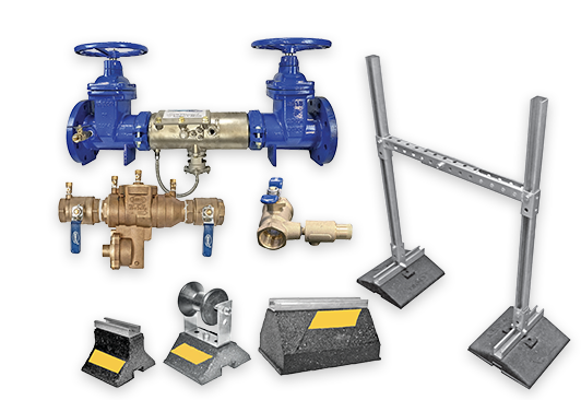 Backflow prevention and rooftop supports for commercial plumbing systems.