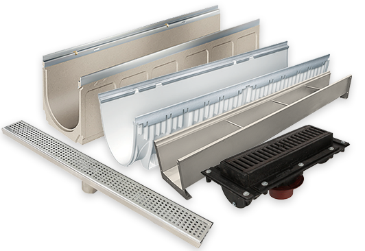 GRP, polymer concrete, and stainless trench drain systems with fast price-per-foot sizing and no-cost layout drawings for installation.